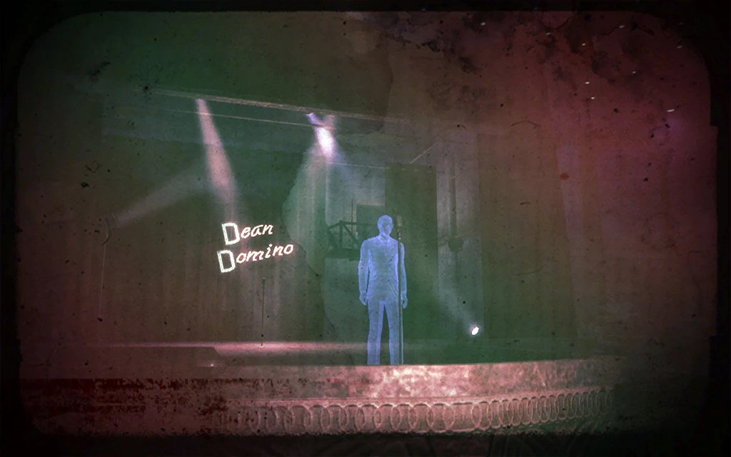 Dean Domino, entertainer, singer... thief... explored the Sierra Madre not long after he was rescued by the Courier. Once he left the theater, the Sierra Madre recognized him as a guest, and many doors opened to him. He had to admit, it had been built to last. During his search, he came across the final records of Vera and Sinclair, and realized what happened the night the bombs fell. He felt strangely sad for a moment, and he had no idea why. Shrugging it off, his mind turned instead to where the Courier had come from. Vegas still survived, out there in the Mojave. Its sights, sounds... and casinos, ripe for the taking. So giving the Sierra Madre one last nod and a wink, he set off beyond the Cloud to begin again.